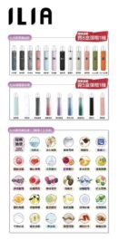 口味: 菸草 可爾必思 芒果 芭樂 西瓜 荔枝 葡萄 白桃烏龍 波羅 哈蜜瓜 薄荷 老冰棍 綠豆 可樂 龍井 百香果 草莓 冰泉 藍莓 蘋果 海鹽 莓果 黑松沙士 奇異果 寶礦力 雪碧 鐵觀音 南極 蜜桃